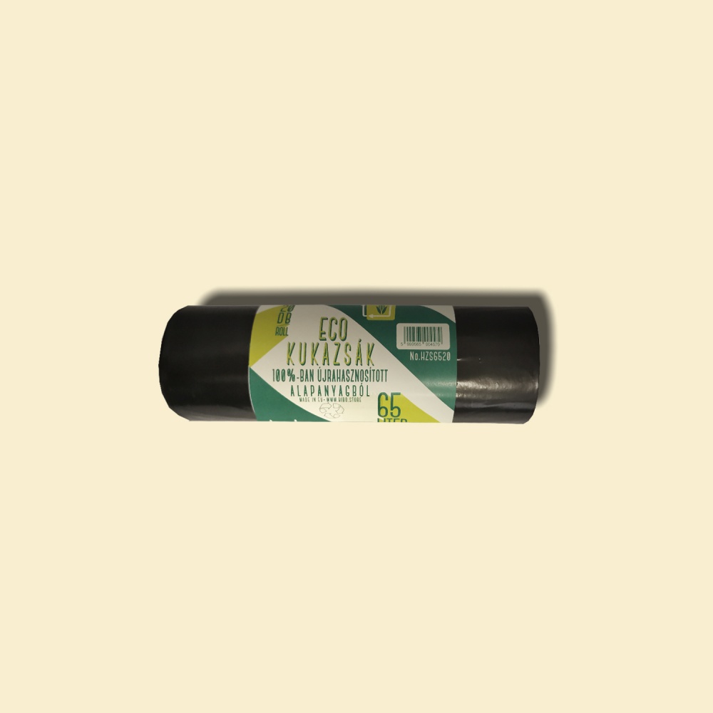 BIBO Eco 100% újrahasznosított Hulladékgyűjtő Zsák, 65l, 60x70cm, 14MIK, 20db/roll (25 roll/csomag)